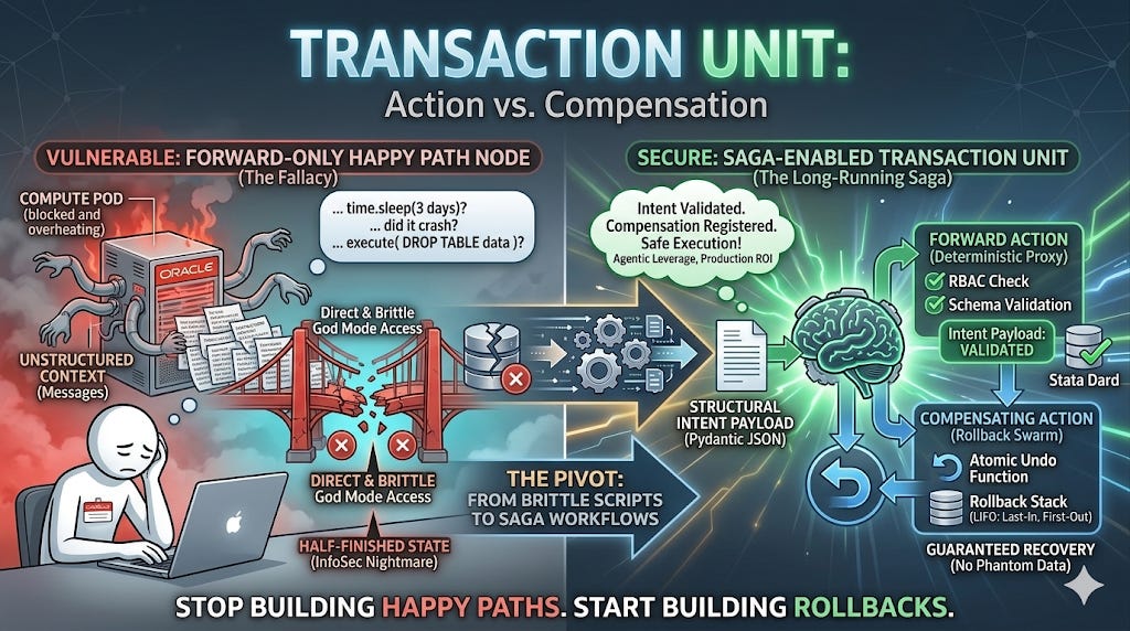 True Agentic Platforms, however, are write-heavy. They manipulate the external enterprise. They spend your company’s money, alter your databases, and talk to your customers. And in the world of non-deterministic Large Language Models, assuming success at every step is not just naive; it is a fundamental architectural vulnerability.